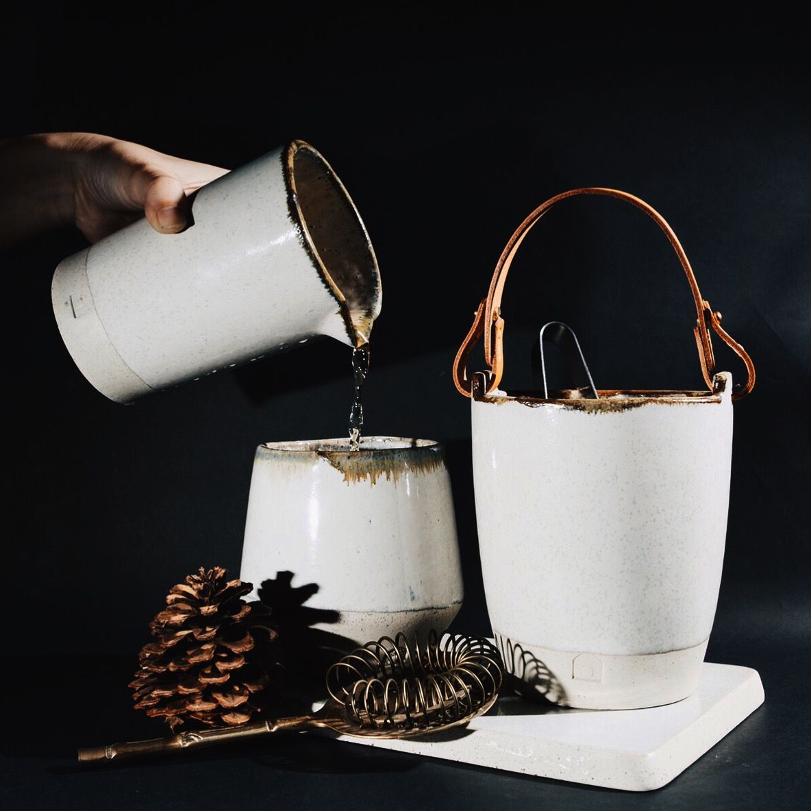 アイスバケツ(レザーハンドル)650バーツ/ネイビー、ブラウン、ホワイトの3色